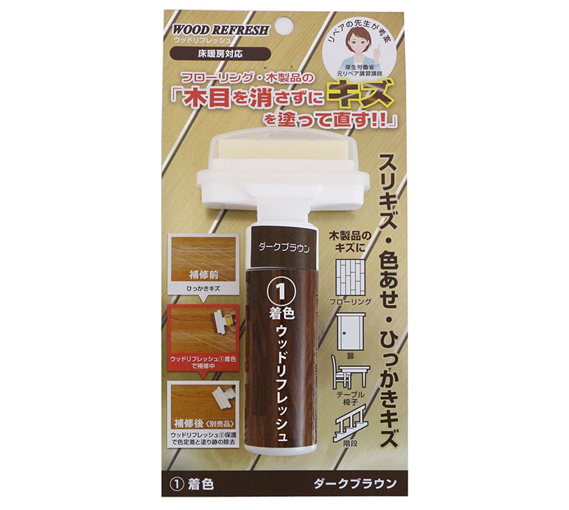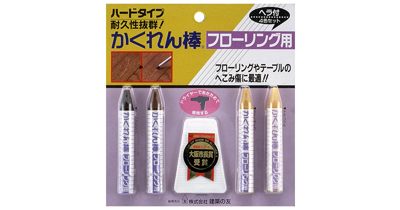 『かくれん棒』は、二種類のアイテムを使うことによって自然に修繕します。最初にクレヨン状のもので、疵のできているところをなぞって生めていきます。次にマニキュア状のもので木目を描いていきます。床に疵がいきやすい原因のひとつに、家具の移動があります。重量のある家具を移動させた際に、引っかき疵が生じるのです。マニキュアの方は、切り疵への使用も可能。様々な用途によって使い分けができます。図工や工作のような感覚で、疵を直せるためにとても楽しいです。お子さんにこのやり方を教えてあげれば、率先して修繕をしてくれるかもしれませんね。たった数分で修繕できるため、多くの人から重宝されているアイテムです。